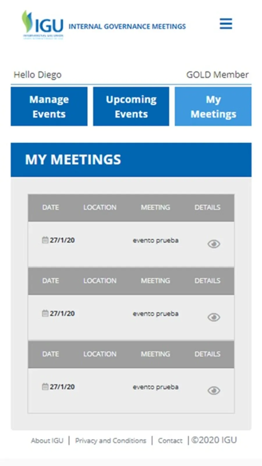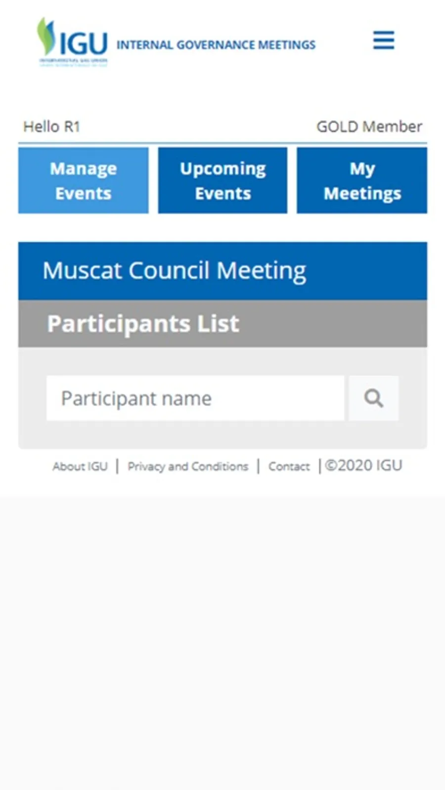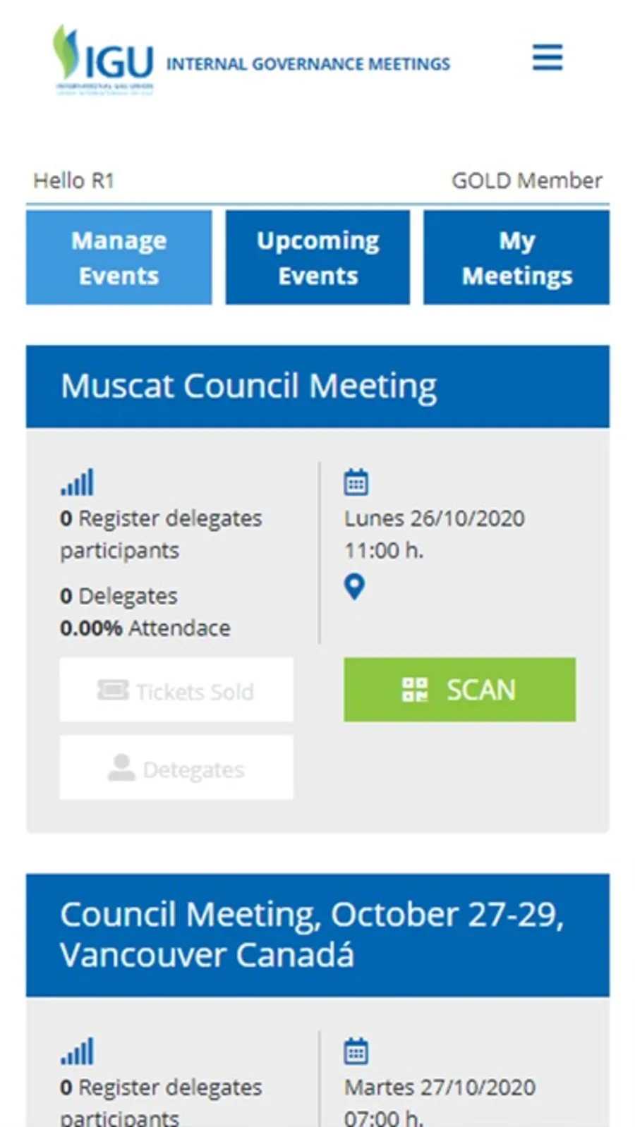 Members: Can view all the events he is registered on. Show his ticket with the app. Search for other delegates in the event.