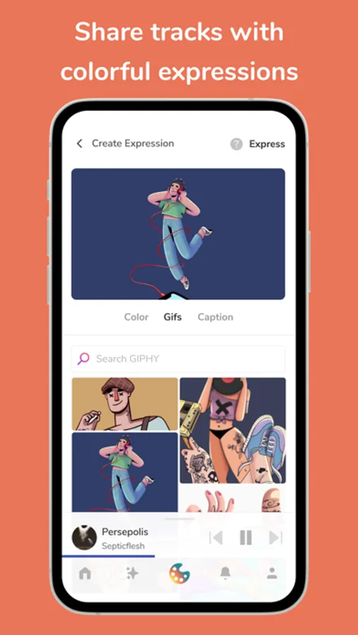 - Express your connection with the music through colorful GIFs, emojis, and stories