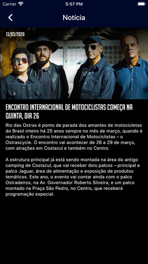 O aplicativo Ostrascycle traz todas as informações do Encontro Internacional de Motociclistas de Rio das Ostras, trazendo programação, transmissão ao vivo, check-ins dos locais visitados, rádio na web e muito mais.