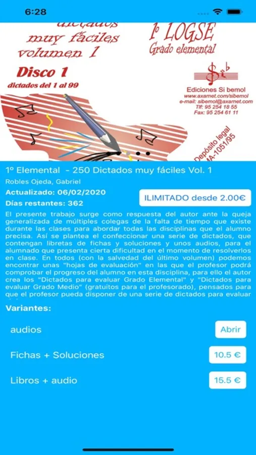 En esta aplicación vas a poder disponer del audio de los métodos musicales de Ediciones Si bemol que hayas adquirido (prescindimos del CD). Te ofrecemos además la posibilidad de adquirir, para su lectura y trabajo, la mayor parte de títulos publicados por esta editorial.