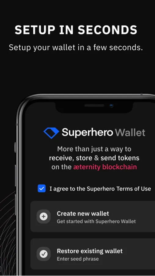 The dedicated Superhero Wallet connects you to the Superhero community