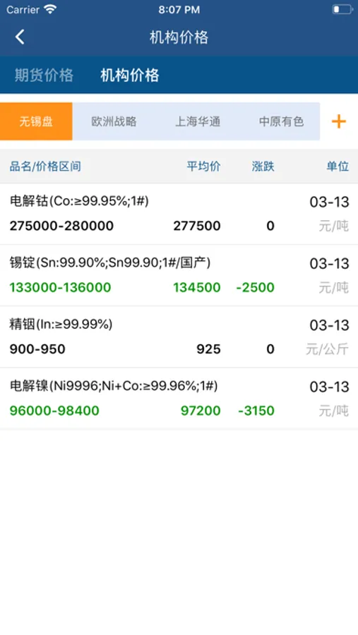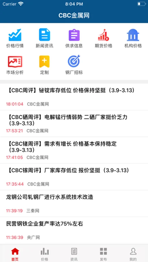 1、价格行情:展现54类有色金属的现货价格、期货价格、机构价格、企业报价、招标价格,同时也为用户提供历史价格的相关数据。