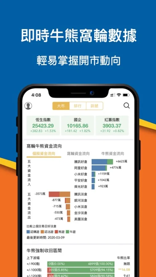 提供即市數據包括好淡倉資金流向、恆指牛熊強制收回區間及牛熊證街貨重貨區等等,令投資者更易掌握開市動向,自然更快更易揀到心水!
