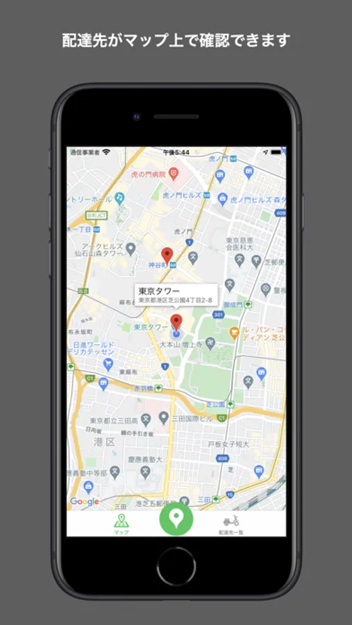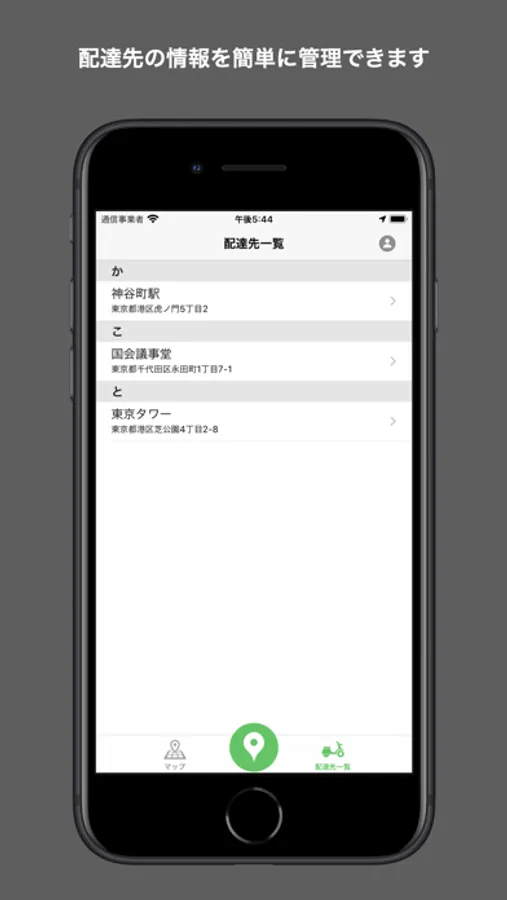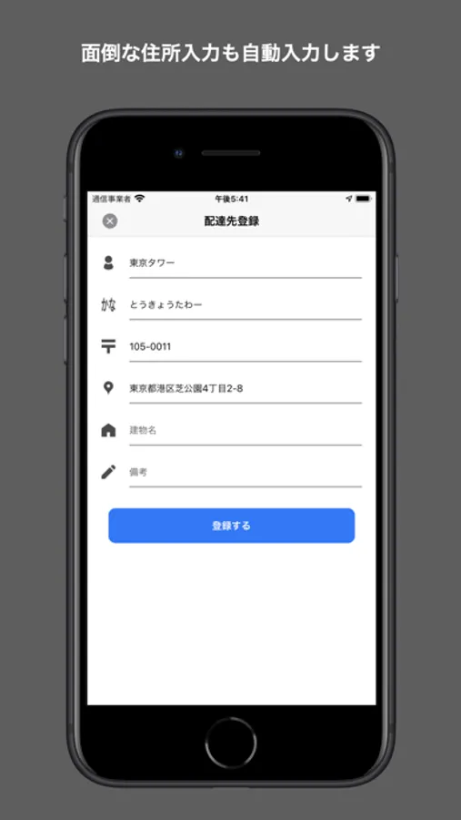 配達先の住所を登録でき、配達場所をマップ上でひと目で確認できるアプリです。