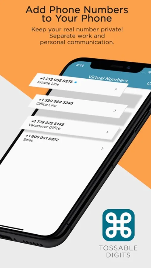 Manage all of your Virtual Numbers in our secure, integrated mobile app. The Tossable Digits app works with any active subscription.