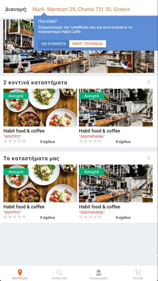 -Εντοπίστε το πλησιέστερο Habit Coffee