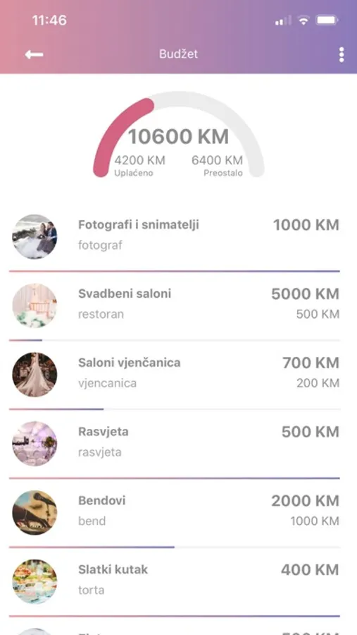 Budget is important part of every wedding. Application will help you to keep track of your expenses and will help you to stay within budget.