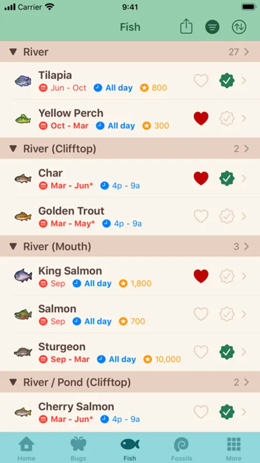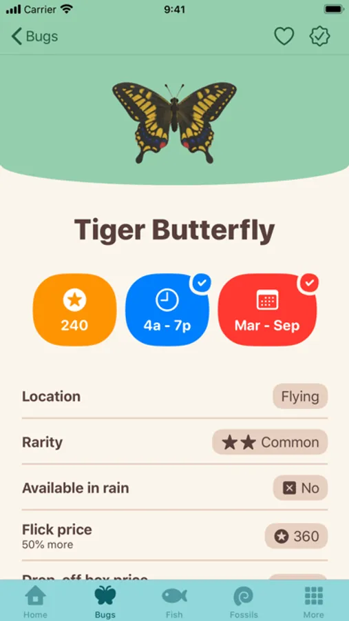 - Detailed information on fish, bugs and sea creatures, so you know exactly when they are available, for how much they sell, and much more