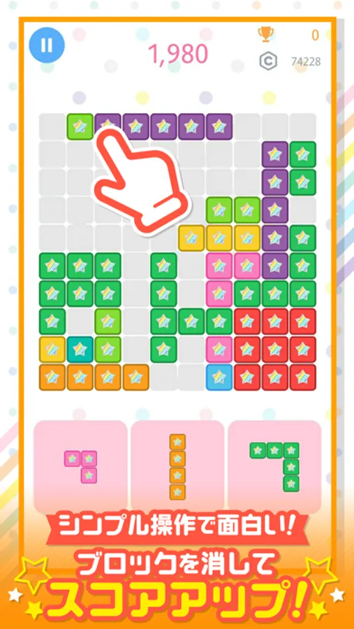 『パズルスターハニー』は、次々に現れるブロックをマスに置き、列を揃えてブロックを消していく定番のパズルゲームです。