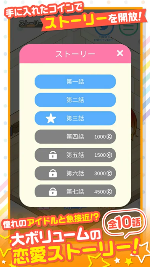 貯まったコインで、ストーリーを解放することが出来ます。