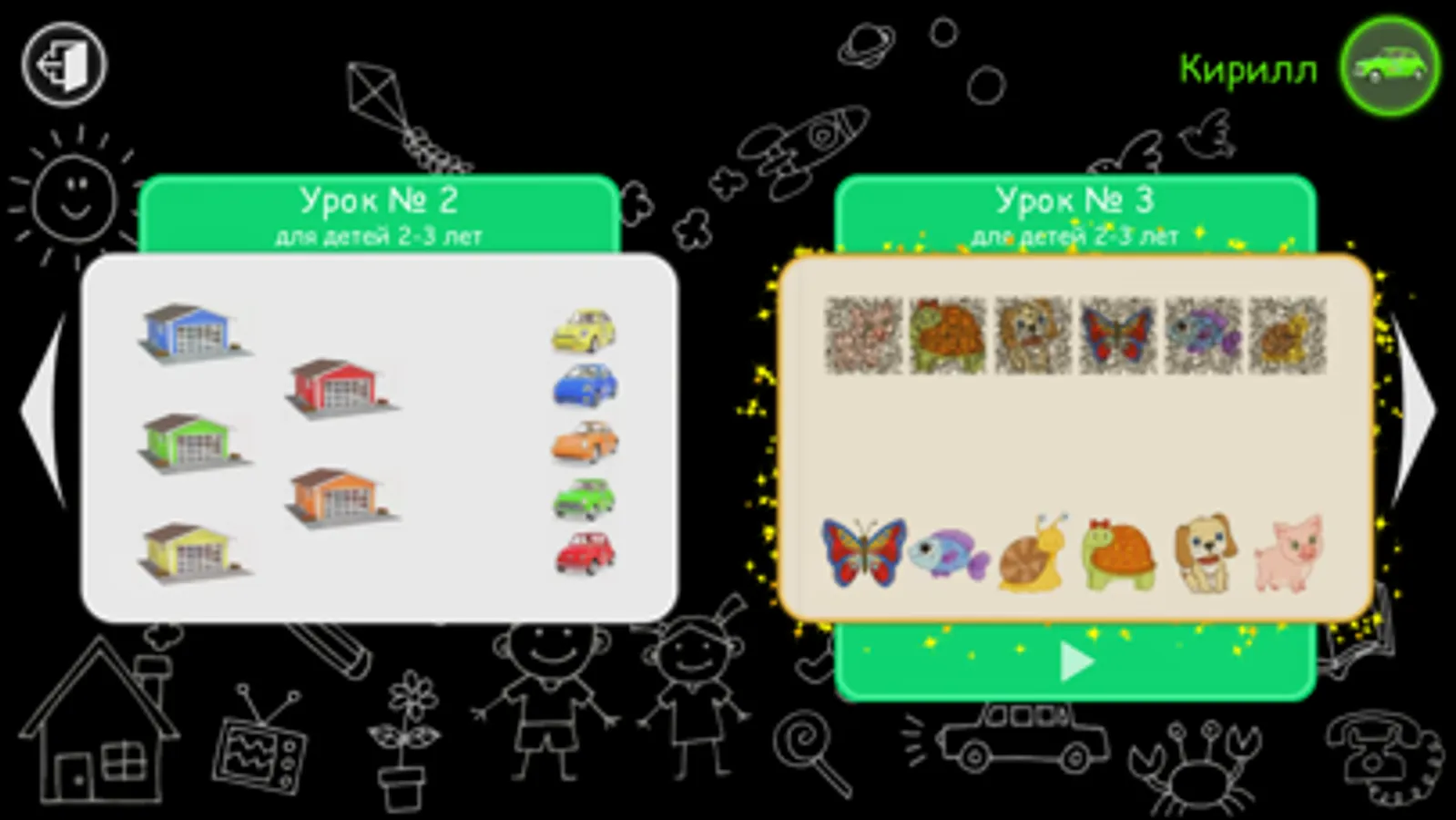 А дальше начинается самое интересное! Нажимаем на задание и погружаемся в увлекательную игру: ребёнку предстоит найти спрятавшихся животных, припарковать машины, соединить пары кубиков и многое другое. А невидимый помощник подскажет, как правильно это сделать.