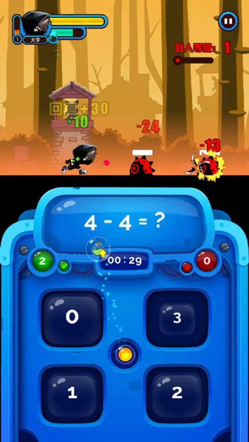 口算英雄是结合了做口算和打怪升级的小游戏,通过做口算击败敌人,挣到更多的金币和水晶,解锁新的英雄或升级你的英雄人物。