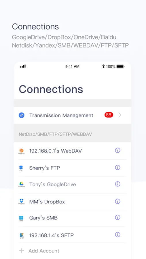 Support SMB, FTP, SFTP, WebDav, Yandex, Goole Drive, DropBox, OneDrive,iCloud, Baidu Cloud Disk,Alibaba Cloud,Nutstore, support encoding automatic error correction capability, Support batch renaming, support encoding automatic error correction capability, support online compression and decompression, image batch optimization and format conversion, and automatic synchronization