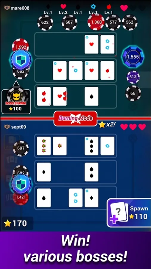 7. Depending on the type of card, you can fill your opponent's chips with health or attack the opponent's card.