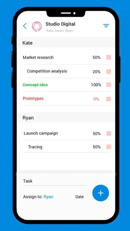Organize your Projects, assign each task to a responsible and monitor everything in real time.