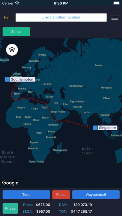 - View arrival and departures times in different formats, including the local time at each of the locations in your route