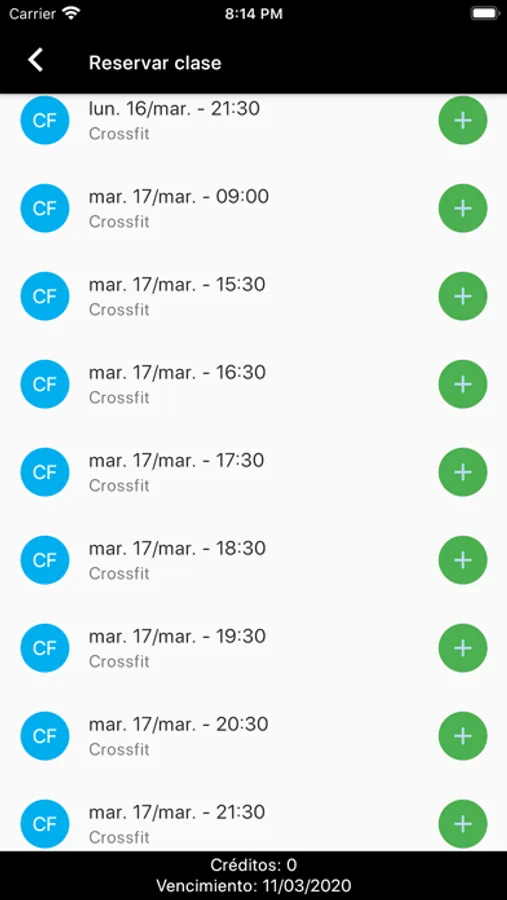 Para reservar, apretas en la opción "Reservar" e inmediatamente verás la lista de turnos con que el gimnasio cuenta. Si tiene lugar, apretas en el signo "+" y confirmas la reserva.