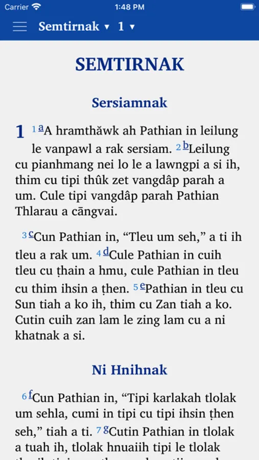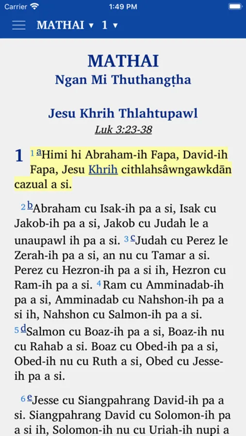 This app provides a translation of the Old and New Testament Bible into the Falam Chin language. It is produced by Bibles International, the Bible Society, Translation and Publishing Department of Baptist Mid-Missions