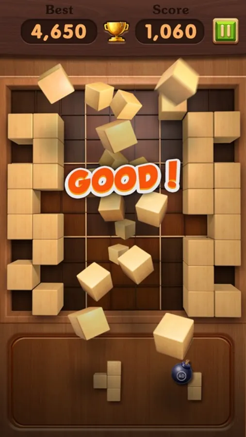 1. Move and match blocks on the 9*9 grid board to clean the board.