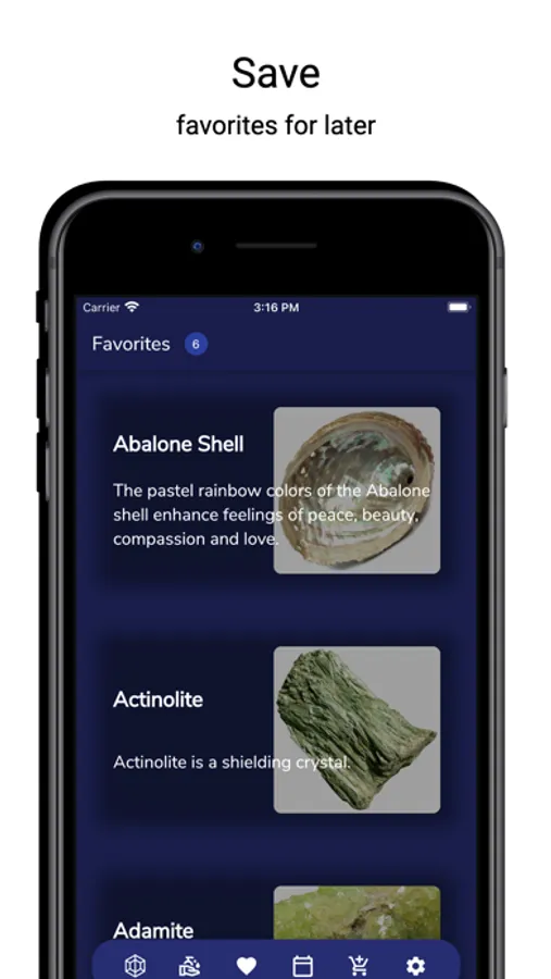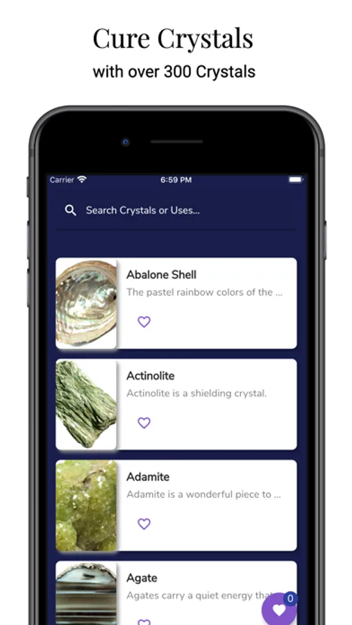 - Cure Crystals provides the ability to favorite healing crystals and gemstones
