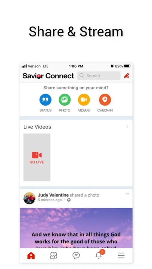 We provide a safe and clean social network for people to communicate around the world. Share messages, upload your photos and videos, live stream, and chat with Christians all around the world. This is a family-friendly and Christian environment!