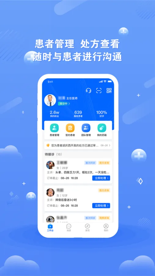 【个人签约】医生以个人品牌进行患者管理,为患者提供在线咨询、诊后病历维护以及医嘱的执行。