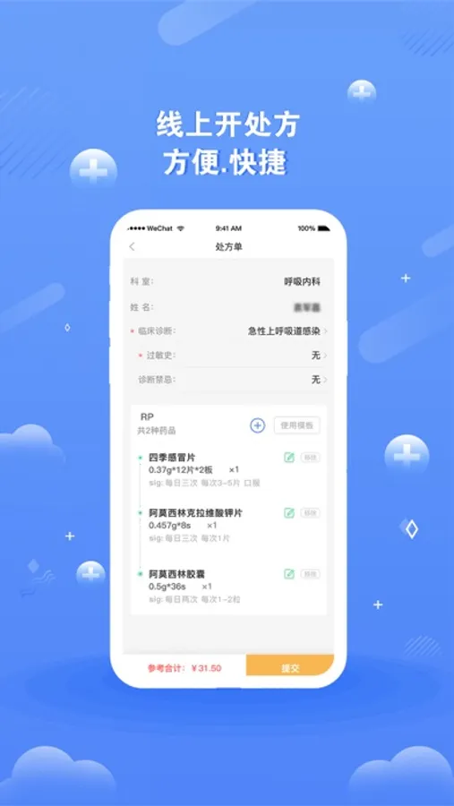 【处方用药】互联网认证医生在线为诊后患者开具电子处方,患者凭处方在线购药,足不出户,配送到家或医院。