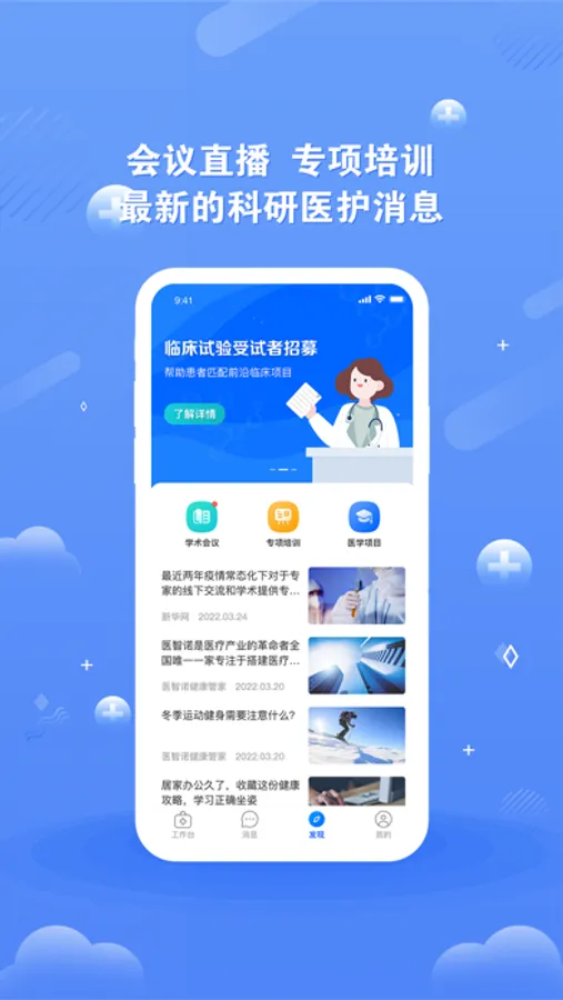 【会议】包括线上报名线下参加的会议和线上的直播会议,方便医生了解更多医疗行业的知识。