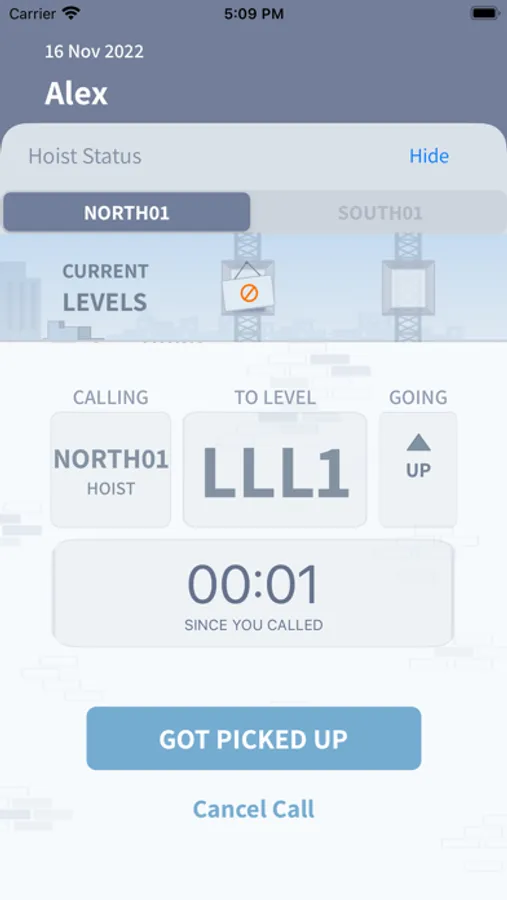 Instead of shouting or using a radio to call the construction hoist and wait for ages till it gets to you, Genda facilitates calling the construction hoist with an easy to use app. The floor is updated automatically by your current location and you can call it up/down in the press of a button.