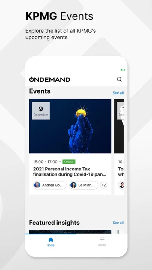 Unlock your potential with KPMG OnDemand. Grow your knowledge and stay abreast of the biggest issues facing senior executives today - through engaging contents and videos, interactive learning and workshops on finance, marketing, digitalization, supply chain and many more across the industries.