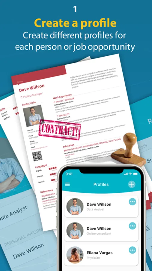 In just a few minutes, create an impressive professional resume that can be emailed, shared and downloaded in PDF format.
