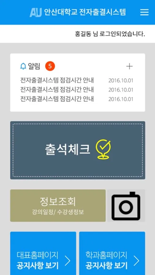 안산대학교 전자출결시스템 Screenshots