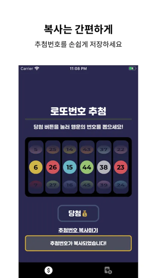 2) '추첨번호 복사하기' 버튼을 눌러 예상 번호를 복사하고 공유할 수 있습니다.