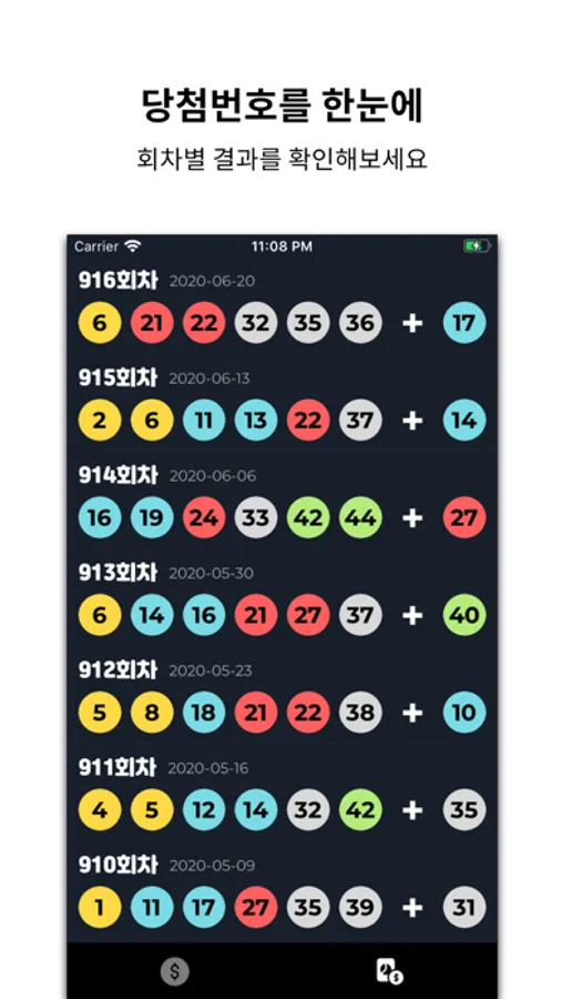 3) 회차별 당첨번호를 스크롤하여 한눈에 확인할 수 있습니다.