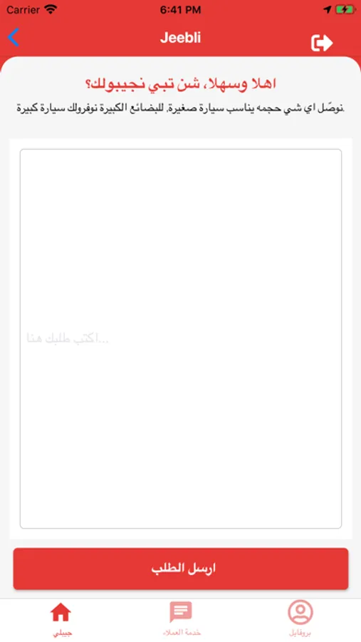 تطبيق جيبلي يوفرلك خدمات لوجستية و يوصلك امانات او طلبيات من و الى اي مكان داخل مدينتك سواء كان طلبيات محلات او مطاعم او اثاث و غيره.