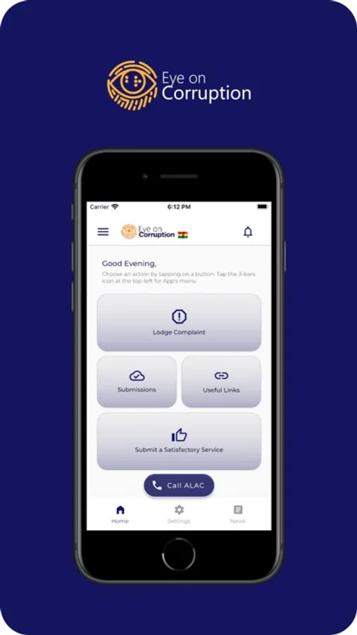 Eye on Corruption App is a mobile application which allows people to report/submit a corruption related complaint to the Advocacy and Legal Advice Centre (ALAC). Eye on Corruption App is geared towards seeking redress to corruption related cases for victims of corruption and gathering the necessary evidence for public policy reforms.