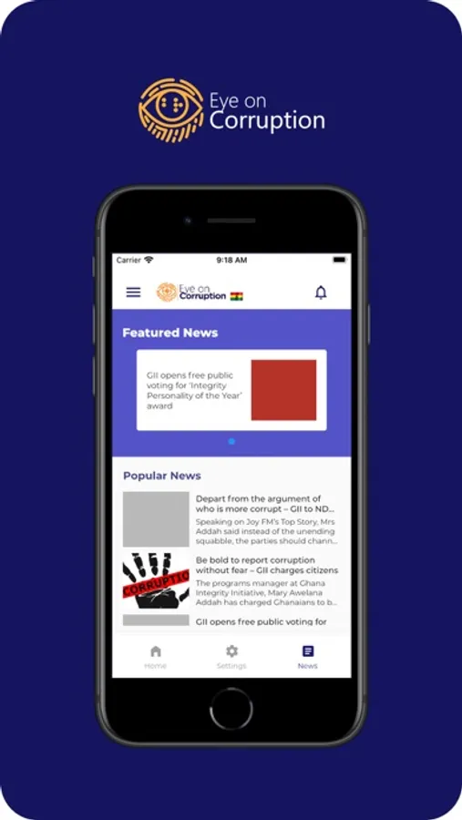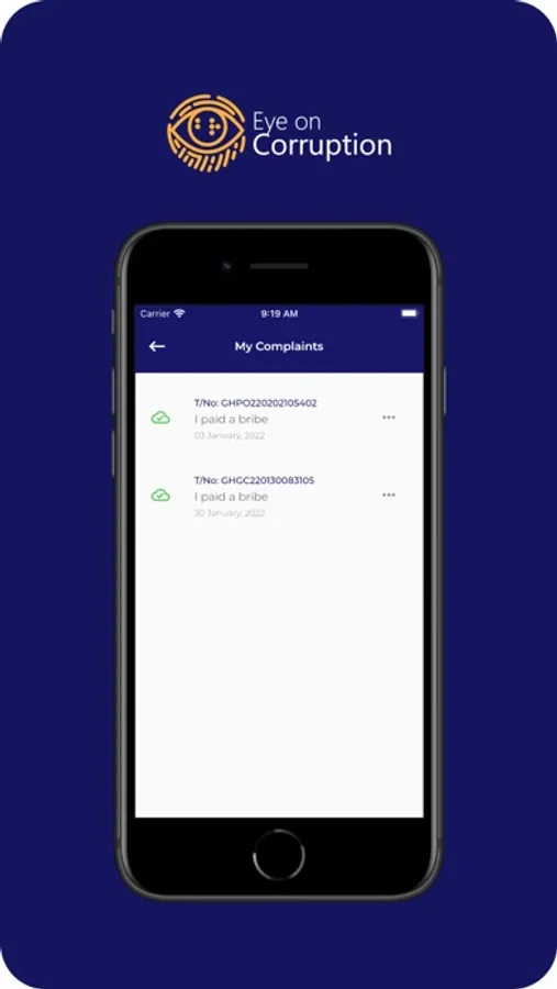 The Eye on Corruption App is geared towards seeking redress to corruption related cases for victims of corruption and to gather the necessary evidence for public policy reforms. Submitted reports are stored for follow up and analytical purposes only.
