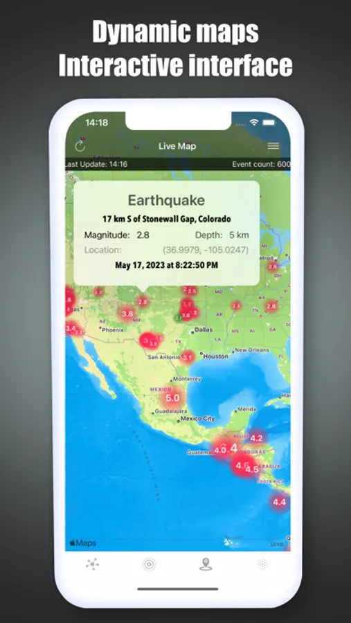 - Real-time data retrieval of seismic activities with magnitude 2.5 or higher from the past month (USGS)