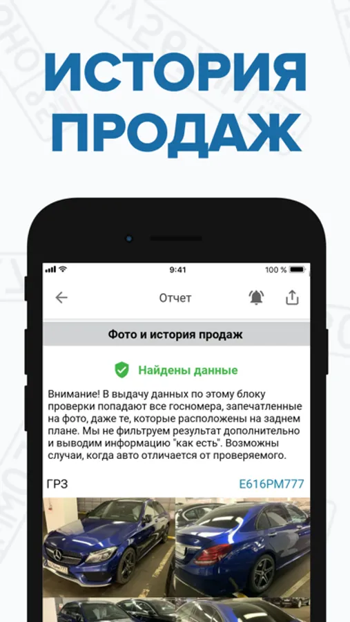 - В приложении имеется услуга получения безлимитных полных отчетов по автомобилю, предоставляемая по подписке с бесплатным пробным периодом 3 дня.