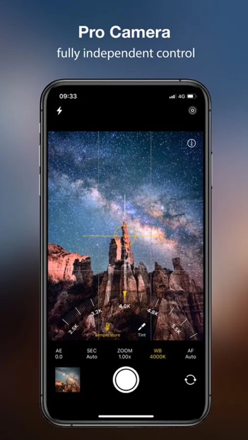- Pro Camera: unlock your phone's potential with fully independent control of shutter/white balance/focus/exposure compensation