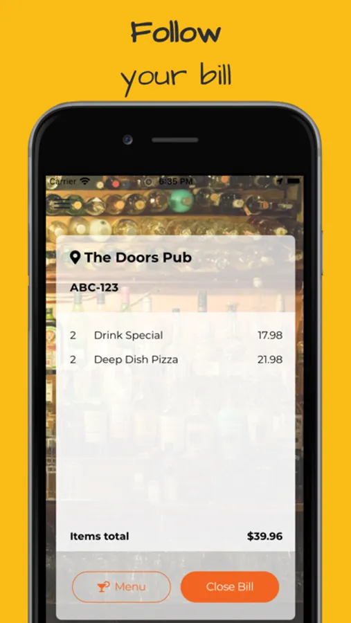 • Once you have your bill open, you'll have easy access to the venue's menu.