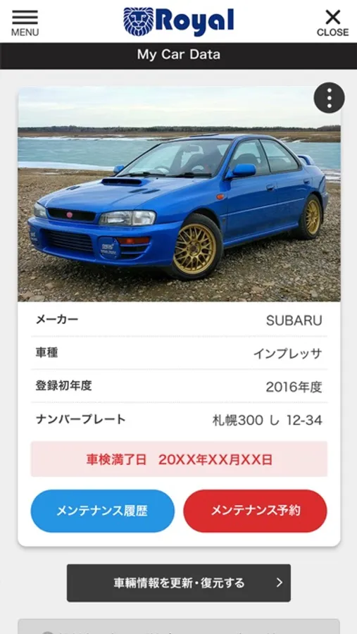 一度店舗へご来店いただきお車の登録がある場合、アプリに必要情報を入力していただくと、ご自身のお車の車検時期などがアプリ上でご確認いただけます!