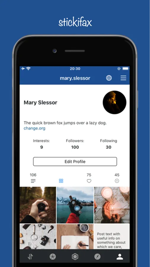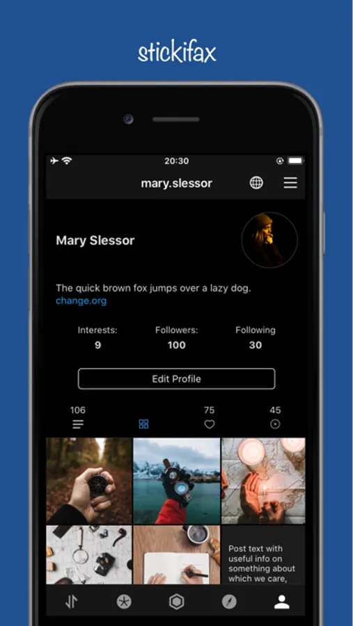 You simply get a basic social experience to share interests with text/photo posts and exchange messages with new friends, with limitations set up to help focus your connections on Stickifax: