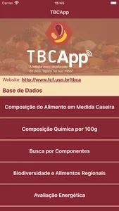 TBCApp, baseado na base de dados da Tabela Brasileira de Composição de Alimentos (TBCA), apresenta informações sobre a composição centesimal (umidade, proteínas, lipídios, carboidratos, cinzas e energia), as vitaminas A e C, cálcio, ferro e sódio, de 3.500 alimentos (1.600 a mais que a versão anterior), incluindo crus e cozidos, produtos manufaturados e pratos compostos. Permite a busca por alimento, grupo do alimento, tipo do alimento e por componente. Também é possível fazer a avaliação energética de uma refeição.