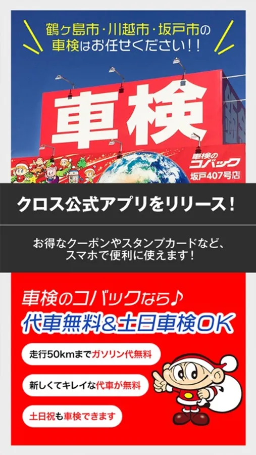 クロスの公式アプリでは、お得な情報やクーポンの受け取り、車検や一般整備など各種メンテナンスのご予約が可能です!ぜひお得に便利にご利用ください。