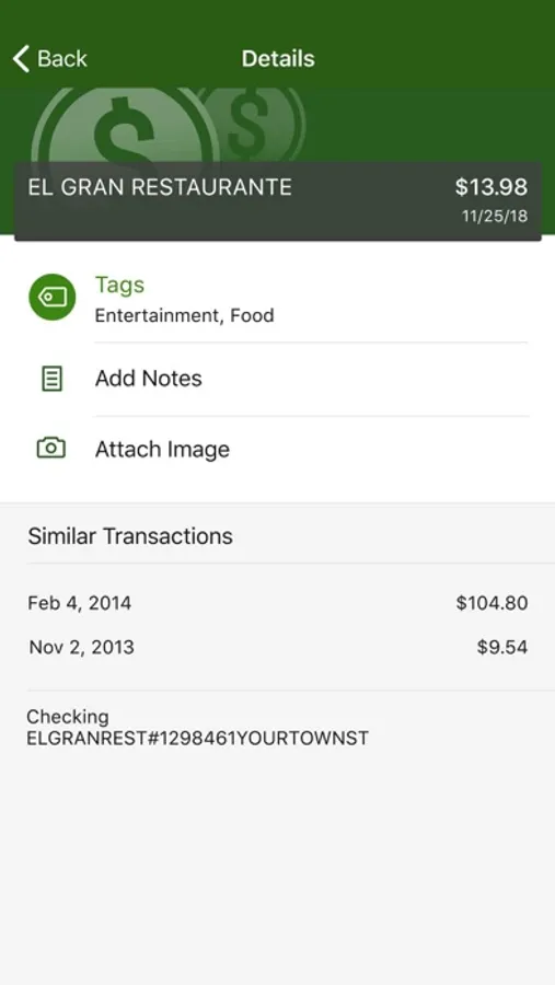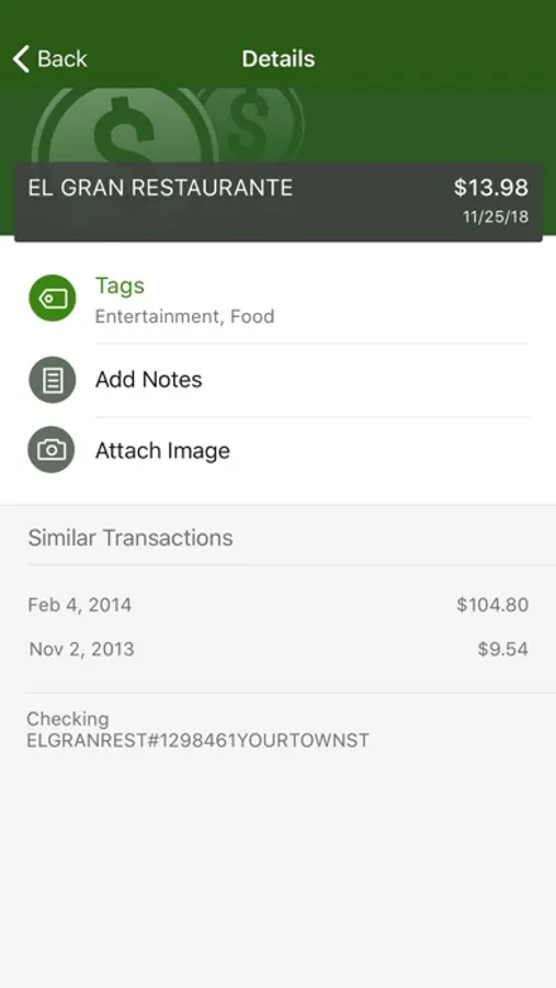 - Keep your transactions organized by allowing you to add tags, notes and photos of receipts and checks.