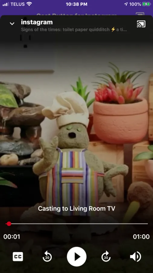 3. You can cast to a Chromecast equipped TV or also to a Cast enabled smart speaker, if you only want to play Audio from Instagram/IGTV posts.