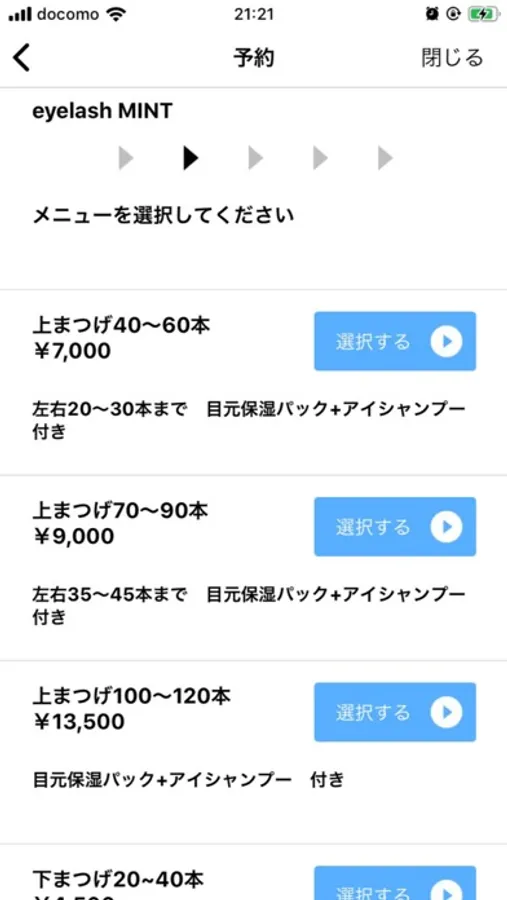 ◇1◇あなたが通うまつエクサロンの予約空き状況が確認できる