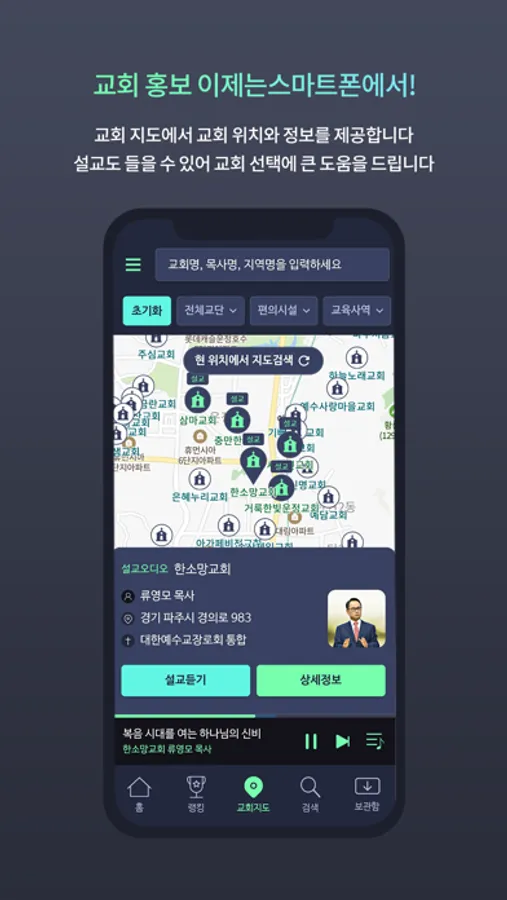 내 주변의 검증된 교회를 지도를 통해 한눈에 찾아보세요!