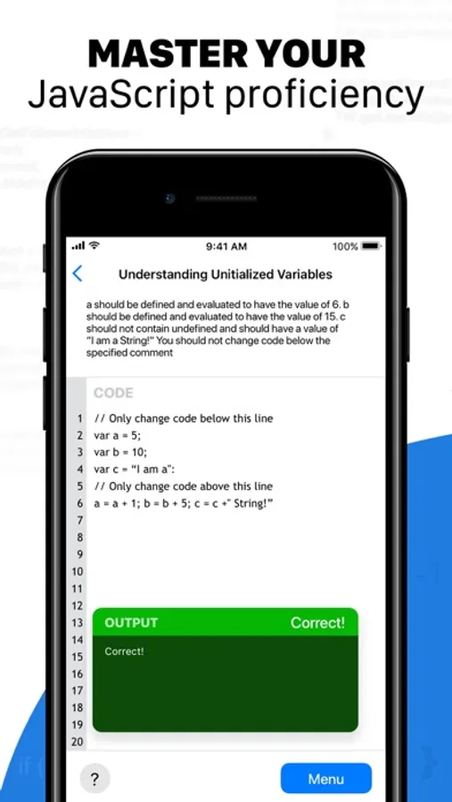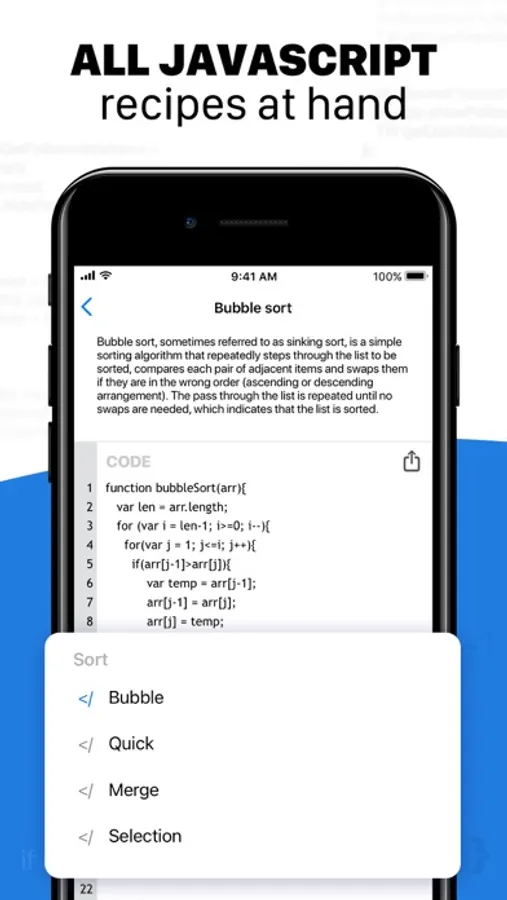 If you want to learn programming but don’t know how to start, our app JavaScript Coding will help you! It includes various Java lessons for beginners which will help you to understand the basics of coding. After each lesson you can complete a task to test knowledge and run the code to see the result.